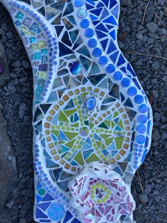 Mixed media artist Melissa Cole Melissa Cole Art (http://www.melissacoledesigns.com/) of Spokane designed and installed a mosaic inspired by Kelly’s love of Barcelona’s Park Guell, where she had been just a few days before her accident, and the design by WSU artist David Hoyt that you see at the top of the page. Melissa incorporated multiple pieces of Kelly’s jewelry into the mosaic – if you zoom in on the photos, you will see many bits of Kelly’s spirit and style.